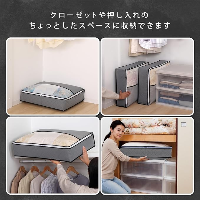 ●活性炭のチカラで消臭保管。活性炭シートがにおいをしっかり消臭。かさばる羽毛布団をにおい・ホコリ・汚れからしっかり守る。