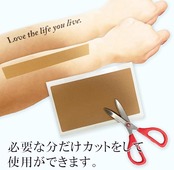 プラスター(湿布)を貼っているような感じに見え、違和感が少ないです。背中など貼りにくい箇所にも手軽に貼れます。