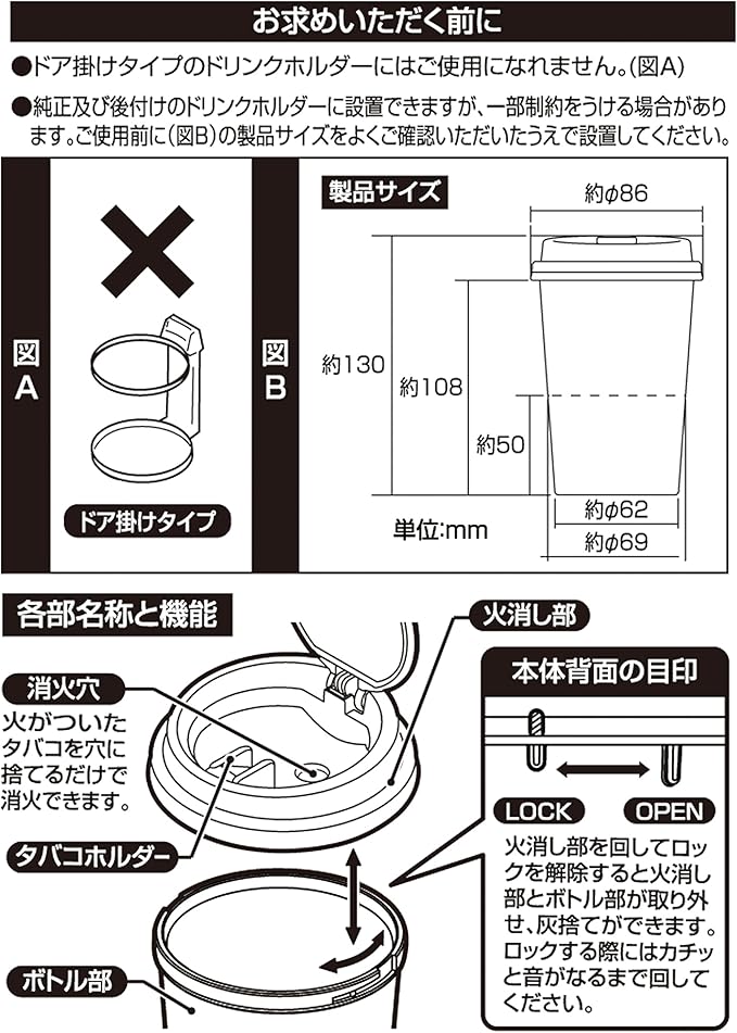 ●フタが付いているので、タバコの臭いが漏れません。大容量のトールサイズです。