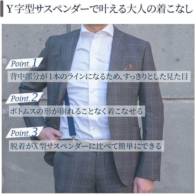 [Mr.JUNKO] サスペンダー メンズ スーツコーディネート フリーサイズ カジュアル フォーマル ビジネス Y型 日本製 ブラック ネイビー グレー 黒 紺 灰
