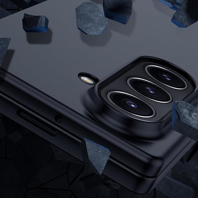 -【外画面立体保護】【多角度防御】外側ディスプレイ周囲に連続的な保護縁を形成。平面置き時の擦れ防止と衝撃吸収を両立する構造で、端末の脆弱部分を重点的にカバー。