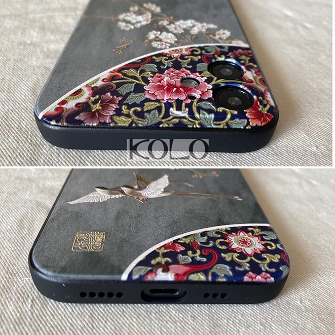 KOLO【福盤貴鳥】iPhone対応 12 mini スマホケース 中国風 中華風 シノワズリ カバー(黒) iPhone12 mini