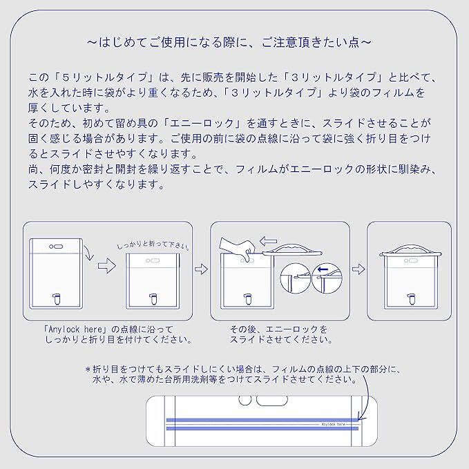 点線に沿って袋に強く折り目をつけるとスライドさせやすくなります。