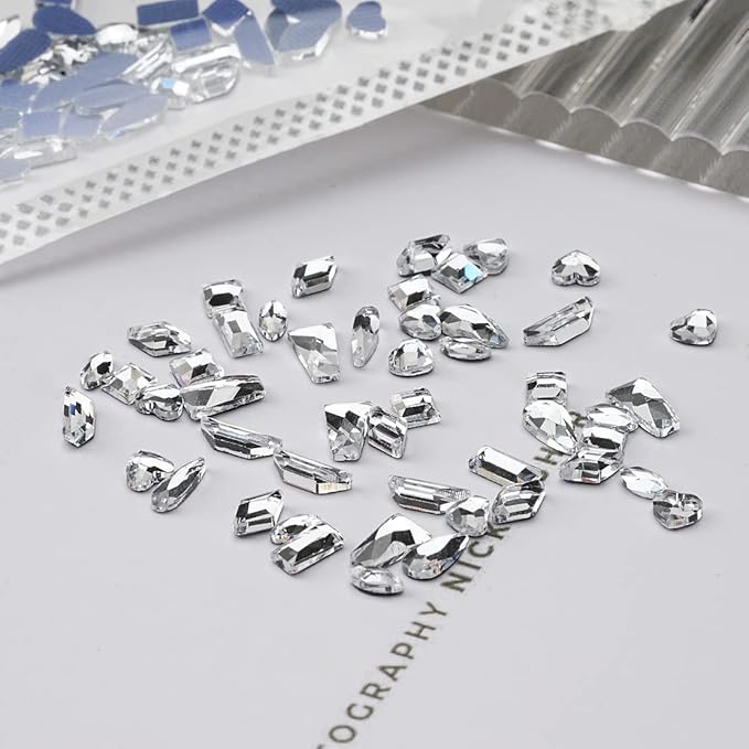 Chisafly ラインストーン ネイル用 ネイルパーツ ストーン 立体 詰め合わせ ホワイト キラキラ ネイルストーン 小さい ミックスサイズ 約100個