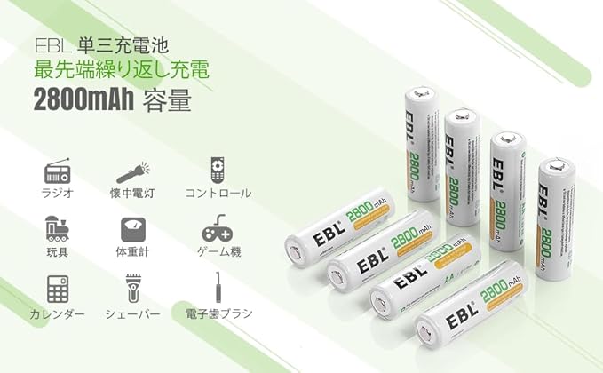 EBL 単3電池 充電式 8個 パック ケース付き 2800mAh ニッケル水素充電 単三電池 充電池 単3 単3充電池 単三充電池