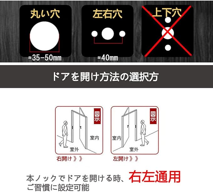 【特徴】室内ドアに適用し、ノブを回してドアを施錠し、メカニカルキーでドアを開けます,内側から鍵をかけて閉め出したと、対応鍵で開け可能,右左通用,ご習慣に設定可能。