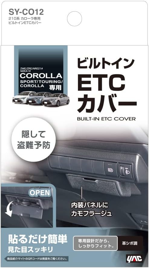 ●トヨタ 210系 カローラ/カローラツーリング/カローラスポーツ (ZWE/ZRE/NRE21#・MZEA1#)のETC車載器ビルトインタイプ装着箇所に取り付けるカバーです。 ●ETC車載器を隠せるため、盗難予防に最適です。 ●専用設計で、ETC車載器ビルトインタイプ装着箇所の内装パネルにピッタリフィットします。 ●両面テープで貼り付けるだけの簡単装着です。 ●ETCカードを抜き挿しする際は、カバーを開けて使用します。 【購入前にご確認ください】 ●本製品はETC車載器を取り付けるための基台ではありません。 ●本製品は、210系 カローラ/カローラツーリング/カローラスポーツ (ZWE/ZRE/NRE21#・MZEA1#)の右ハンドル車専用です。 ※調査日(2022年11月現在)以降のマイナーチェンジ車には適合しない場合があります。 ●ETC車載器のビルトインスペース周りに追加オプションが装着されている車両には取り付けできません。 ●ETC車載器ビルトインタイプ(ベーシックタイプ/ボイスタイプ)を装着している車両に対応します。 ●本製品取付後、カバーを閉じた状態ではETC車載器の通電ランプは見えなくなります。 また、ETC車載器からの音が聞こえにくくなる場合があります。 ●市販のETC車載器等を車両のビルトインタイプ装着箇所に取り付けている場合、開口部からの飛び出しが4mmを超える場合は本製品を取り付けできません。