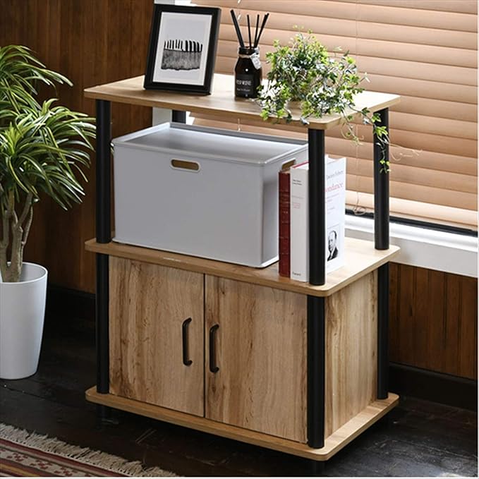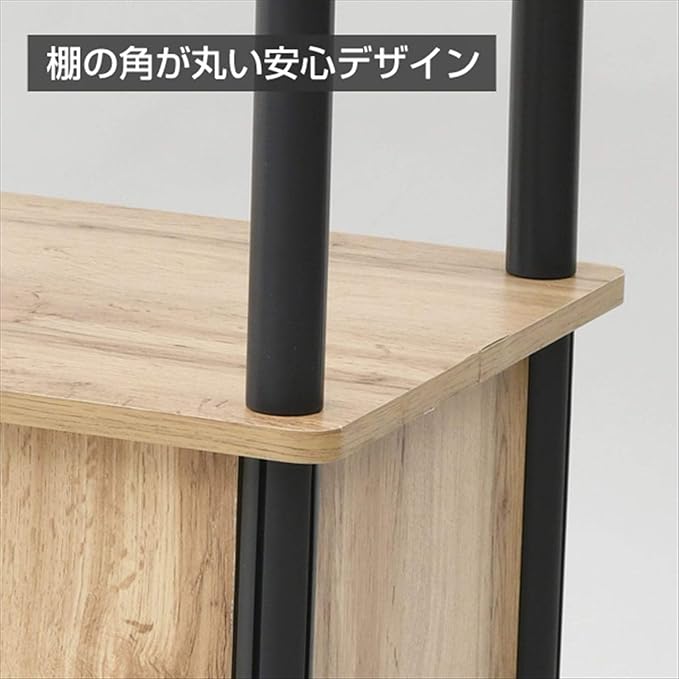 山善(YAMAZEN) ラック 幅60 扉付き 3段 YGKT-2(OAK4BK) オーク(支柱ブラック)