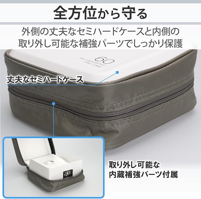 ■外側の丈夫なセミハードケースが、Blu-ray/CD/DVD Discをしっかり保護します。