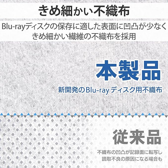 ■表面に凹凸が少なく、きめ細かい繊維の不織布を採用しています。