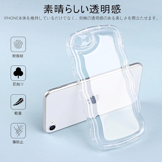 【究極な透明美学】品質高いTPU原材料を使用し、特殊加工により高い透明度を実現します。アイフォンSE3本体の美しさをより際立たせます。また、柔軟性が高く、ケースの取り外しも簡単であり、装着の際に本体を傷つける心配もありません。滑りにくく、持ちやすいです。耐久性が高く、長くご使用いただけます