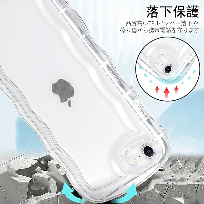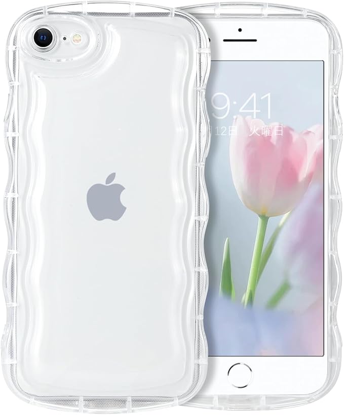 VENINGO iPhone SE3ケース iPhone SE用ケース クリア ウェーブ おしゃれ TPU 韓国 かわいい スマホケース se 人気 アクキー アクスタ 可愛い シンプル 滑り止め 薄型 軽量 耐衝撃 指紋防止 レンズ保護 ストラップホール付き iPhone SEケース 第3世代 2022 5G iPhoneSE ケース 第2世代 iPhone8/7用 ケース 透明