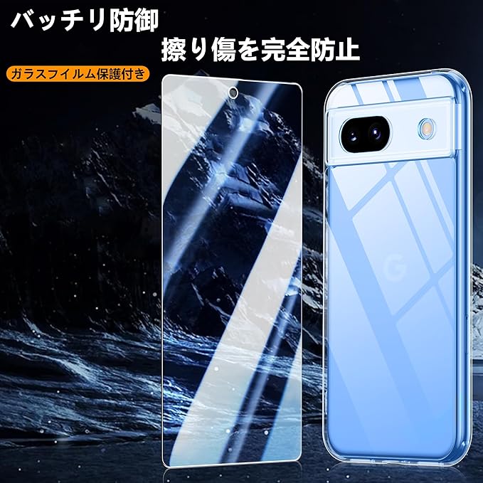 Google Pixel 8a ケース クリア 黄変防止 グーグルピクセル8a用 耐衝撃 ガラスフイルム保護付き 指紋防止 落下防止 耐久性 ストラップホール付 薄型 軽量 ソフトカバー ワイヤレス充電対応 googleピクセル8a 用 XIWXI