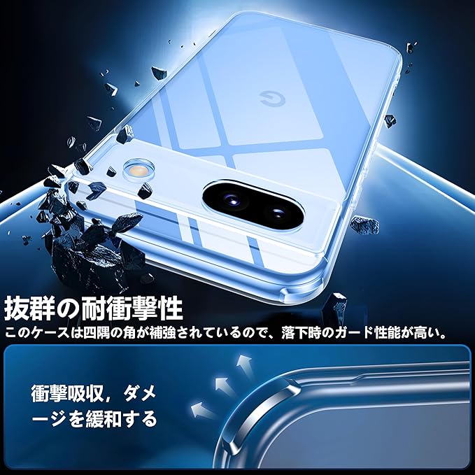 【抜群の耐衝撃性】背面は丈夫なPC素材+ダメージを緩和するTPU素材の保護ケースで、google pixel 8aを強力に保護します。ディスプレイ側にはある程度の高さがあり、落としても本体に傷がつきません。