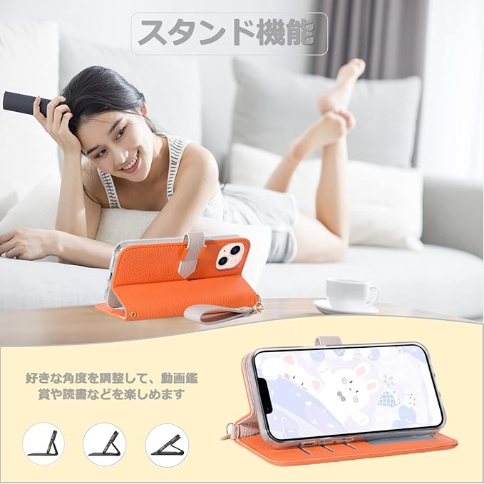 iphonexrケース 手帳型 iphone11ケース手帳型 iphonexrスマホケースストラップ付き おしゃれ かわい いiphone XRスマホケース iphone11 携帯カバー あいふぉん11手帳型ケースカード収納 シンプル 財布型 人気 TPU スタンド機能 (iPhone 11/ iPhoneXR, オレンジ)