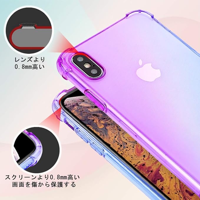 Arrows Be4 Plus F-41B ケース クリア 耐衝撃 薄型 グラデーション 透明 TPUバンパー 薄型 軽量 取り出し易い 全面保護 カバー 光学メッキ加工 おしゃれ 擦り傷防止 指紋防止 ストラップホール付き スリム 紫/ブルー MJJ-1044-68-5