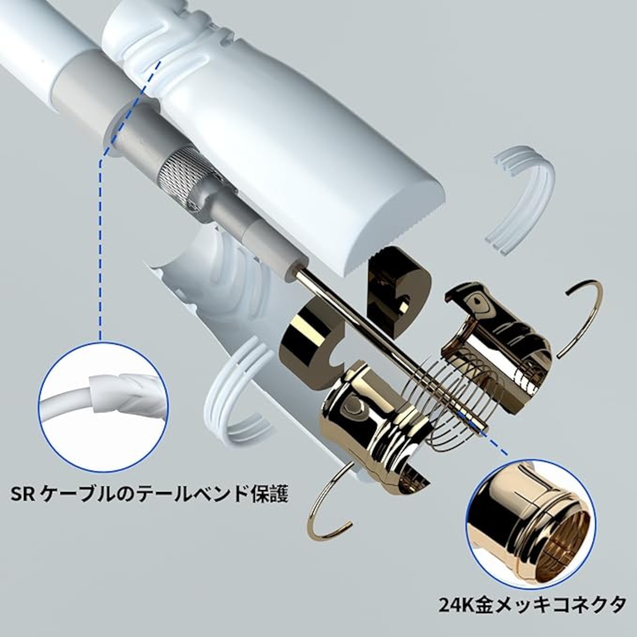 【製品仕様】●ケーブル規格:S-4C-FB ●カラー:白/ホワイト●ケーブル長:30M ●ケーブル直径OD(太さ):6.0mm ●コネクタ形状:L字差込式とネジ式(24K金メッキ仕様)●インピーダンス:75Ω