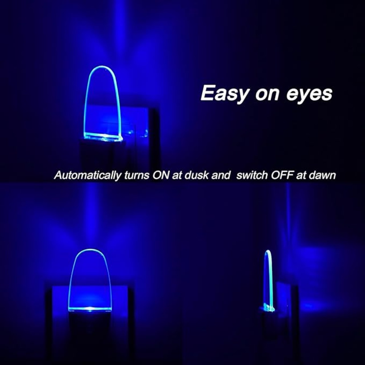 ブルーナイトライト フォトセンサー付きプラグインは4個パック。 寝室用の柔らかいナイトライトです。コンパクトなプラグで2つ目のコンセントを遮断し、低消費電力で安価なLEDナイトライトです。お子様部屋や大人の寝室用に4個パックをお届けします。