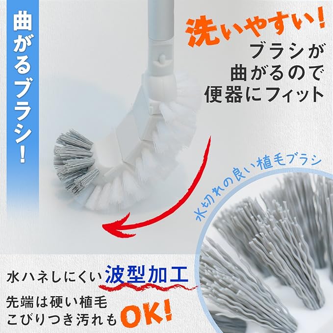 洗いやすい「曲がるブラシ」。ブラシ部分が曲がるので、便座のカーブに合わせて洗える。