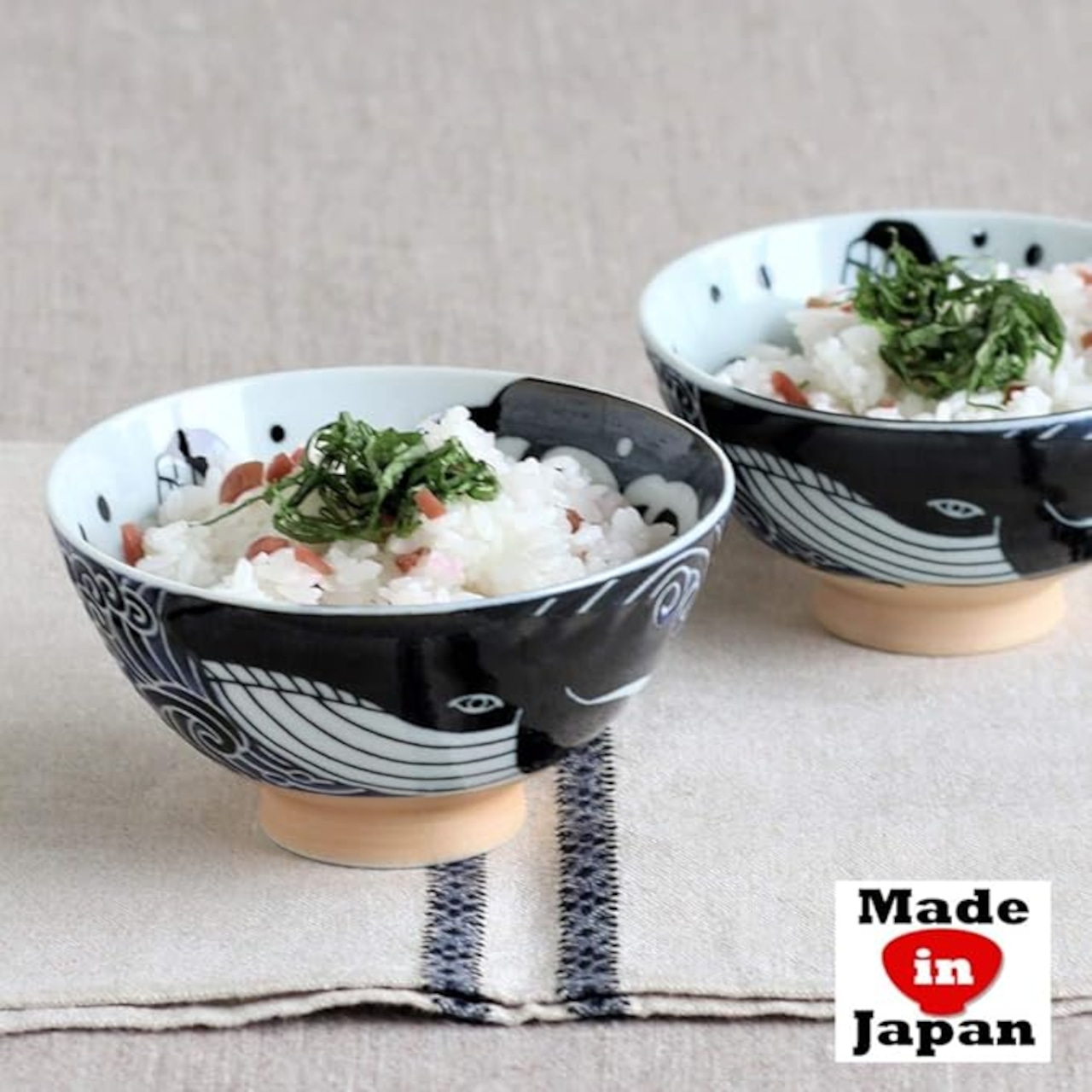人気形状の飯碗にみのる陶器オリジナルのくじらモチーフをつけました