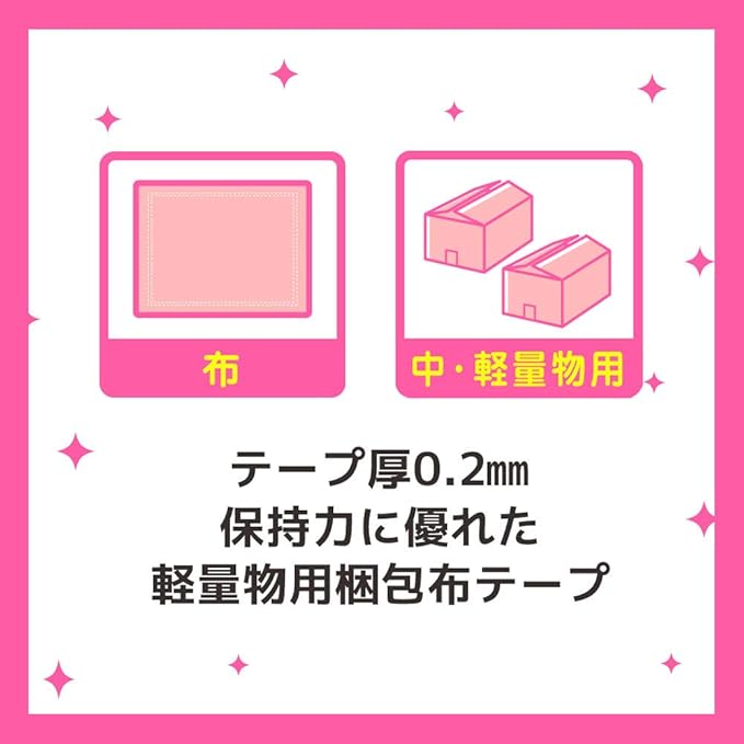 【保持力に優れた布タイプ】 強い粘着力でしっかり梱包できます。 保管する荷物や軽量の宅配便の梱包などに便利です。