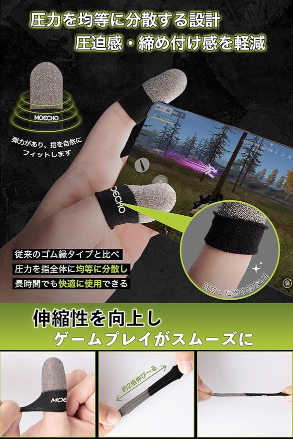 【通気性抜群・指先&画面を清潔に】指サックゲーム用は通気性に優れ、長時間の着用でも蒸れにくく、快適にお使いいただけます。手汗を吸収し、タッチパネルに指紋や汚れが付きにくく、清潔に保つことができます。ゲーム中の誤タップを減らし、よりスムーズなプレイをサポートします