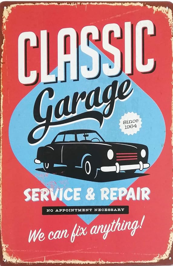 ブリキ製のレトロ看板。アメ車やヴィンテージのカスタムカーショップやアメリカンダイナー、バーの雰囲気にマッチする看板です。