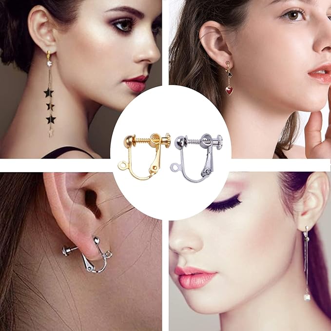 YINKE イヤリングパーツ 40個 手芸 手作り用 パーツ イヤリング 耳穴なし アクセサリーパーツ ネジバネ式 DIY 基礎金具 (ゴールド+シルバー各20個)