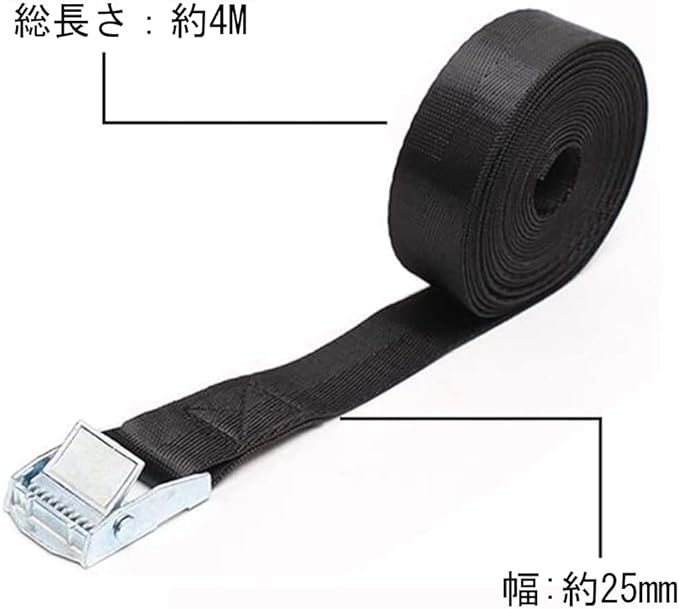 【サイズとカラー】サイズ:25mm*4m、カラー:黒い、セット:4本。破断強度:250kg、使用荷重:100kg。