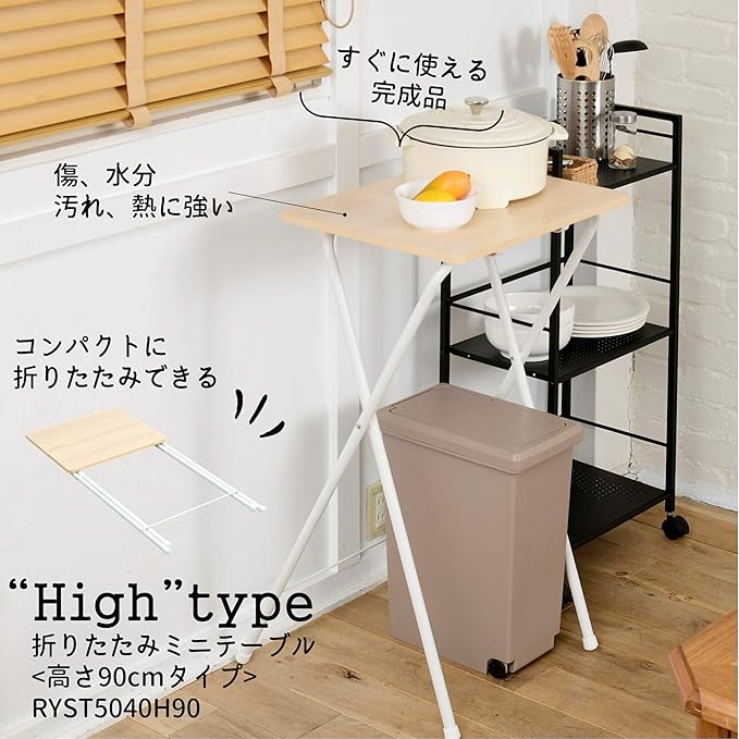 山善(YAMAZEN) 折りたたみテーブル (スタンディングデスク) 高さ90 傷・汚れ・水分・熱に強い天板 幅50 奥行52cm サイドテーブル スタンディングデスク 完成品 ウッドナチュラル/ホワイト RYST5040H90(WNWH) テレワーク