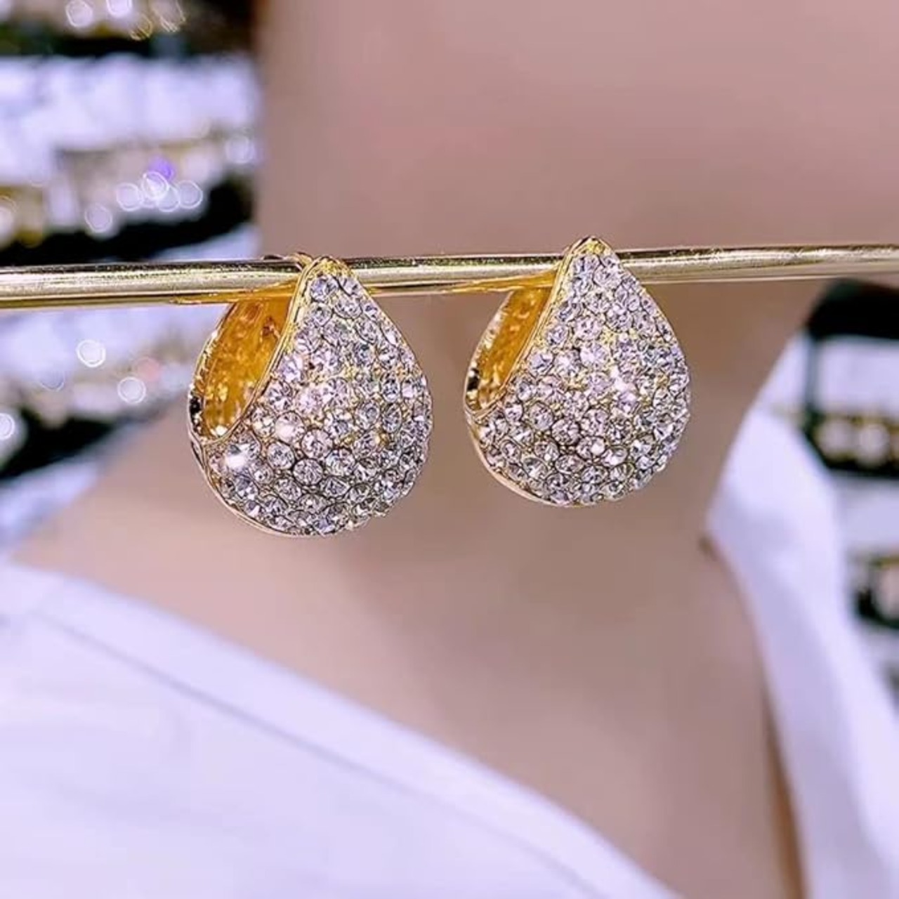 【きれいめ華やかデザイン】二重に広がるリングピアスの片方にジルコニアを敷き詰め、温かみのあるリング本体と、輝くジルコニアをミックス。サイズにもこだわって設計し、小ぶりなまま存在感があるサイズ設計