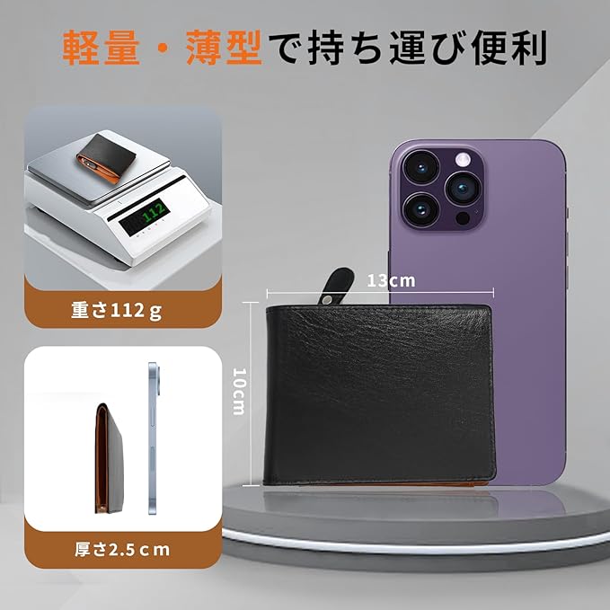 【紳士のビジネスパートナー】 コンパクトな2つ折りデザインながら大容量。メンズ財布職人が開発した機能美で、スーツの内ポケットに自然にフィットします