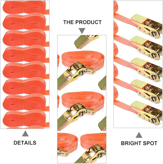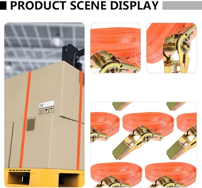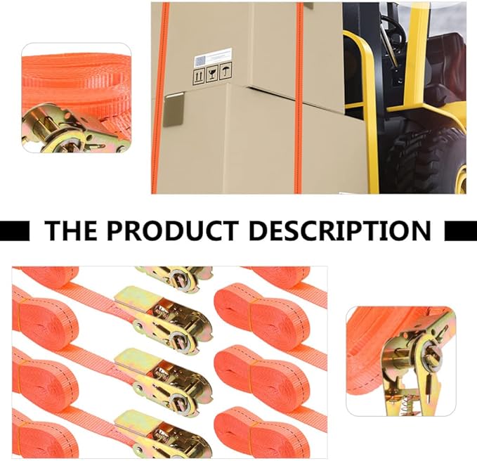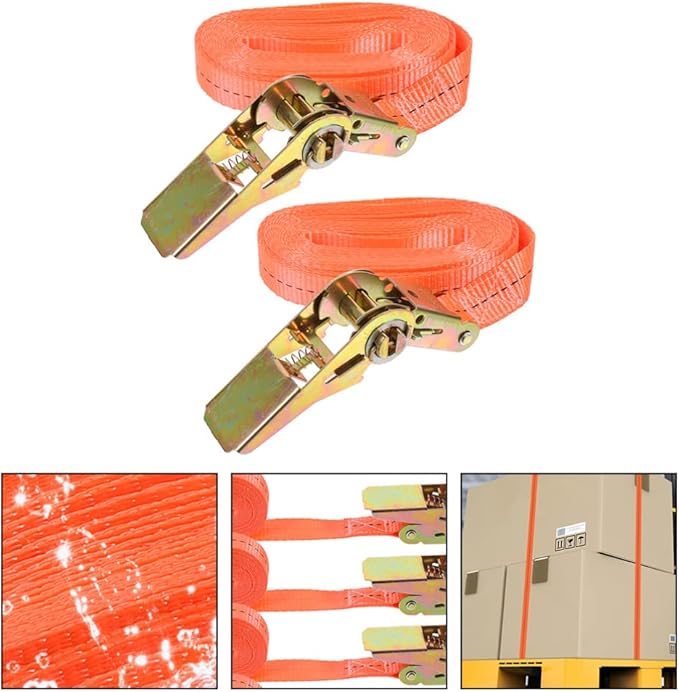 タイ 2 本 ラチェット タイダウン ストラップ ポリエステル ラッシング ストラップ カム ロック バックル付き 梱包ケーブル 貨物輸送 カヤック キャンプ用 (オレンジ) 6MX25MM トラック