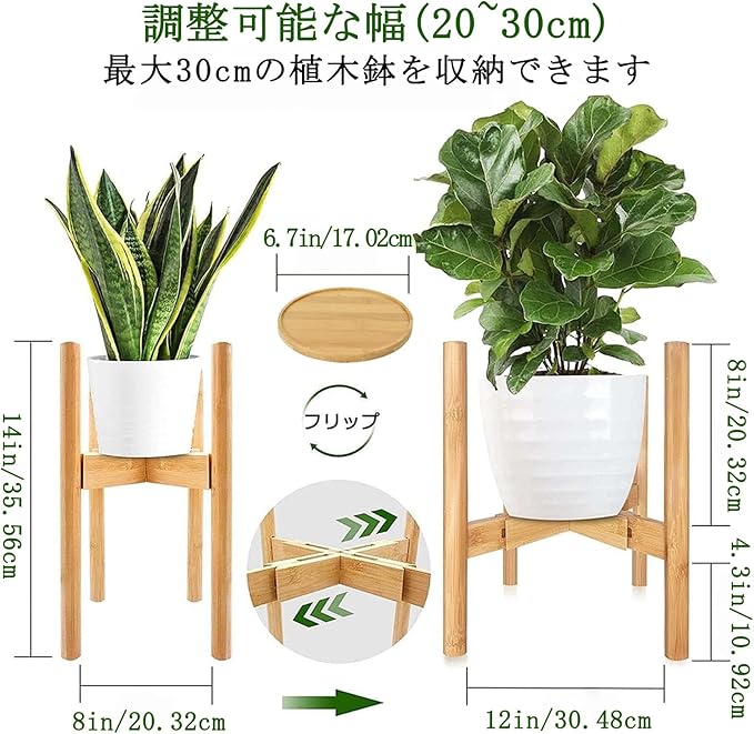フラワースタンド 花台 鉢スタンド 植木鉢台 トレイ付き 幅20-30cmまで調整 て 竹製 植木台 て 100KG耐荷重 花ポットホルダ 組み立て簡単 鉢置き 屋外室内