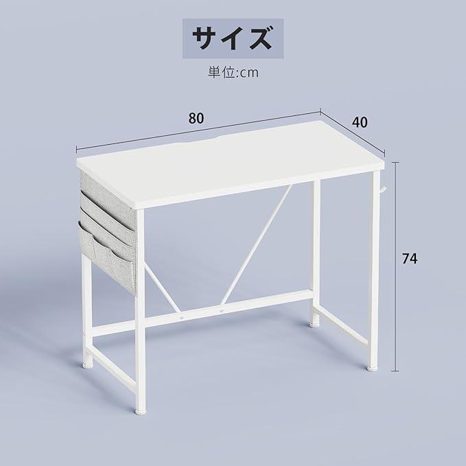 YeTom デスク 机 pcデスク 勉強机 幅80cm パソコンデスク 収納袋付き学習机 小さい つくえ 作業机 在宅 組立簡単 テレワーク 白い