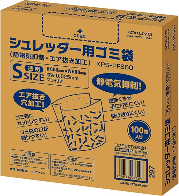 コクヨ シュレッダー用 ゴミ袋 S 静電気抑制 KPS-PFS60 透明