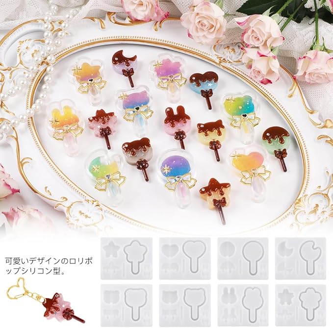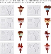用途:くま、うさぎ、ねこ、ハート、つき、星、桜、丸いロリポップシリコーン型が作成できます。