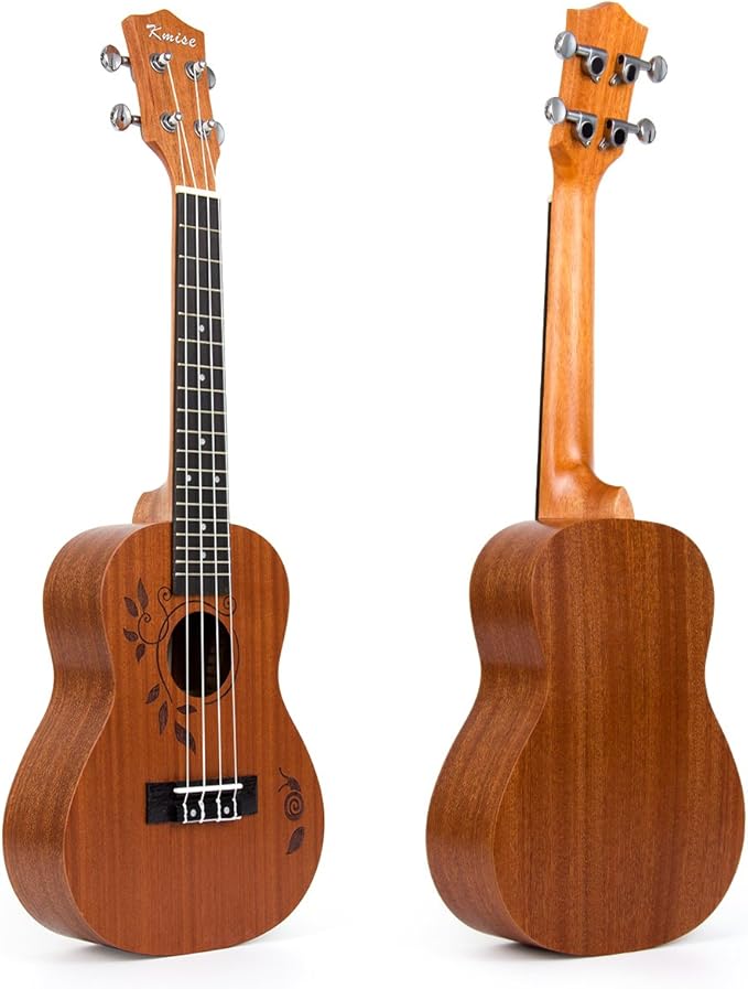 kmise コンサートウクレレ 23インチウクレレ チューナー、ケース付け!レーザでトップ図案あり