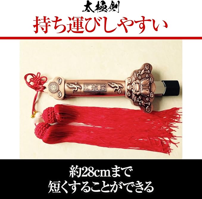 持ち運びもしやすい:練習場や演舞を披露する場所まで持っていく際は、約28cmまで短くすることができるので、カバンなどにも入れやすく、持ち運びがしやすいです。ステンレス製の刀身なので、錆びなどにも強いです。