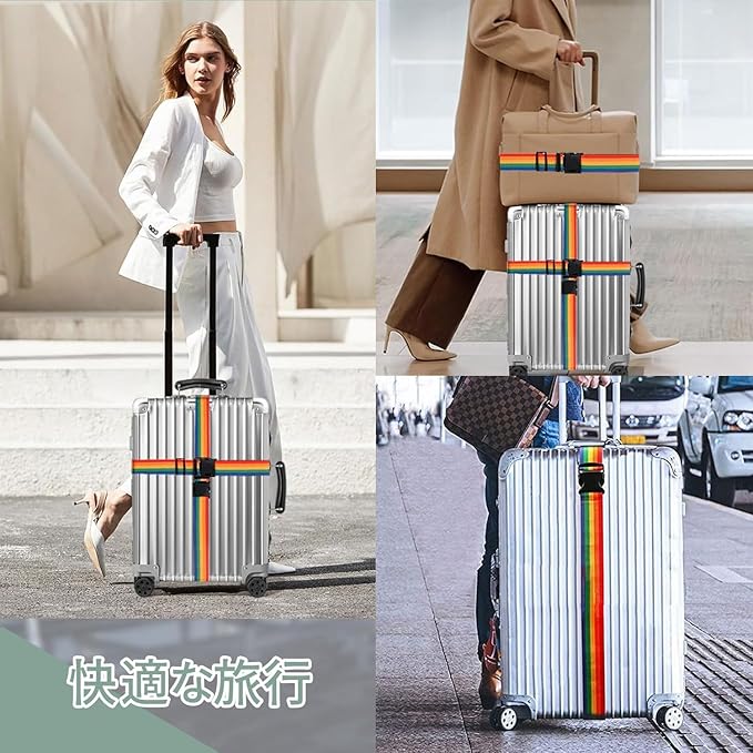 【見つけやすい】カラフルなベルトはシンプルなスーツケースを飾り、荷物の識別を容易にします。
