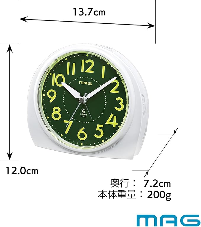 MAG(マグ) 目覚まし時計 置き時計 アナログ 見やすい 静音 連続秒針 電子音 アラーム スヌーズ ライト ホワイト あけぼの T-711 WH-Z ノア精密