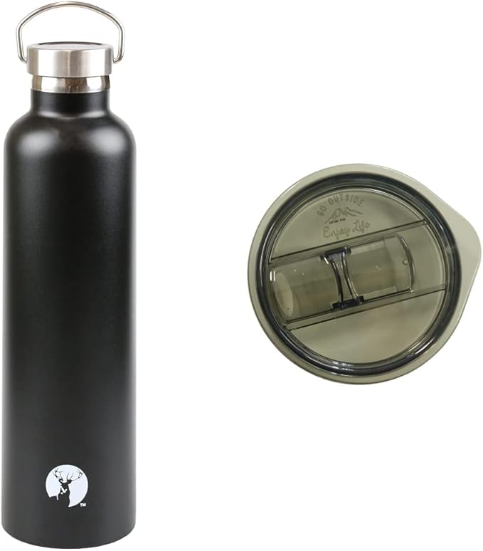 限定商品限定商品 スポーツボトル 水筒 直飲み ダブルステンレスボトル 真空断熱 HDボトル 1000ml ブラック UE-3372 & ダブルステンレスマグカップ用 フラップ フタ ブラック モンテ UE-4912【セット買い】