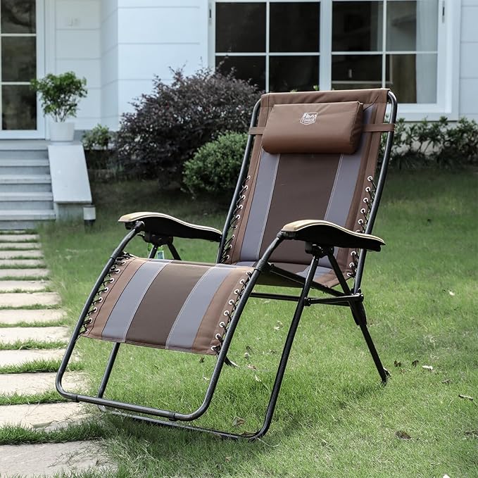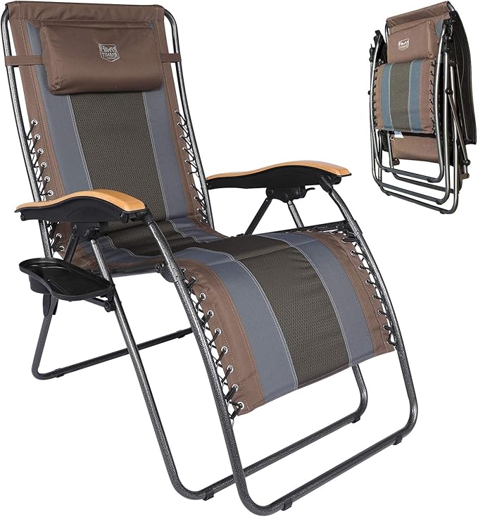 TIMBER RIDGE リクライニングチェア 折りたたみ 耐荷重160kg ワイド(座幅60cm) 角度調節 インフィニティチェア キャンプ カップホルダー付 枕つき 一人掛け ゼログラビティーチェア リラックスチェア 仮眠 お部屋 オフィス 勤務 自宅用