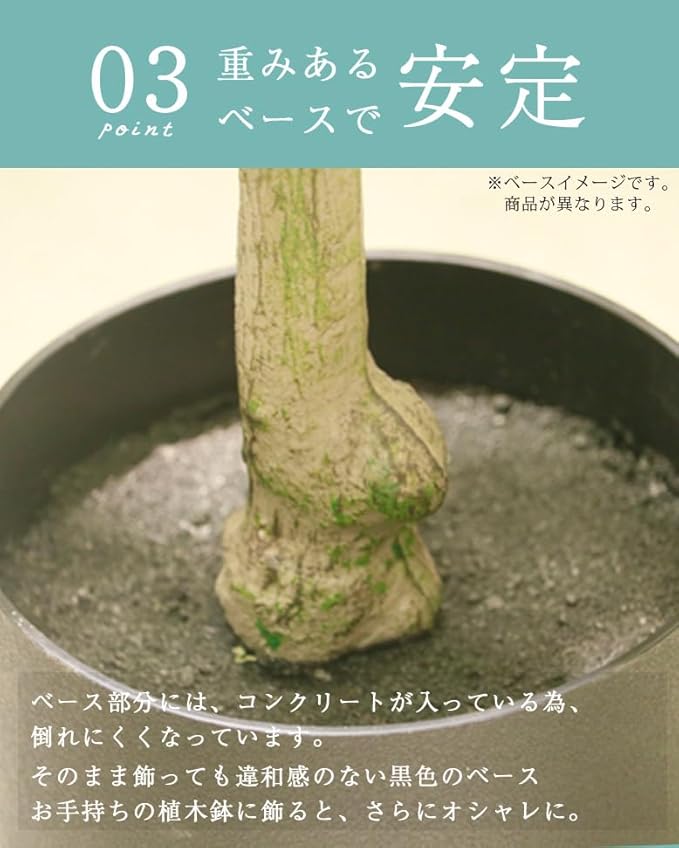 ・手軽に緑を取り入れて、おしゃれで癒しのナチュラルライフを楽しみませんか? ・大切な方や尊敬する方へのプレゼントとしても喜ばばれています。 ・お部屋を華やかにしたり、気分転換してみたり、心地良いリラックス空間を作ってみたり。自分だけのおしゃれなお気に入り空間作りに、フェイクグリーンを置くだけ! ・一枚一枚葉脈までリアルに表現された葉は、心も癒される明るめのグリーンカラー。 人工観葉植物を眺めるだけで、本物の植物と同じリラックス効果があると言われています。 ・お手入れなしで気軽に観葉植物を飾れるのもフェイクグリーンの良い所! 葉が落ちたり成長もしないので、本物の植物を置きづらい場所にも緑を飾ることができます。 ・枯れない、水やり不要!玄関、廊下、トイレ、寝室、書斎、地下など日当たりの悪い場所や暗い所でも、いつでも元気な植物の姿を見せてくれます。 ・ほこりがついたら柔らかい布でそっとふき取っるだけ!簡単お手入れです。 ・商業施設やオフィスなどにも採用されるプロ仕様ほ品質です。 ・フェイクグリーンを身近に取り入れて、おうち時間をステキ楽しみましょう。