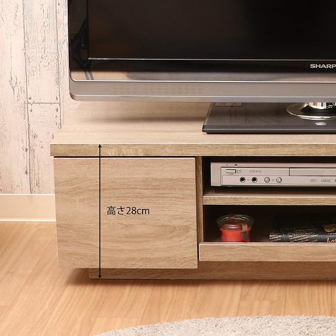 不二貿易 テレビ台 TVボード 32型対応 幅100 奥行38.5 高さ28cm ホワイトオーク 木目調 引出収納 オープンラック 99264