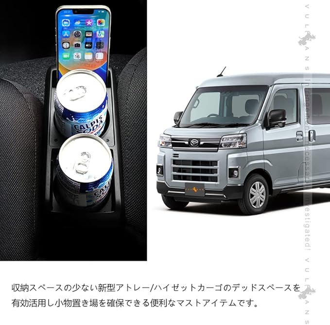 【VULCANS】アトレー S700V/S710V 3WAY コンソールボックス フロントシート リアシート 収納ボックス スマホホルダー 小物収納 カード入れ 内装 パーツ カスタム 汎用 ハイゼットカーゴ S700V/S710V センターコンソール ボックスコンソールトレイ ドリンクホルダー