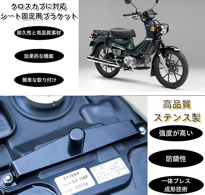 クロスカブに対応 シート固定用ブラケット スーパーカブ 110/50に対応 【非中空管制品】固定ステー ズレ防止ストッパー バイク用品50/110 JA60 JA45 AA06、スーパーカブ50/110 JA44 AA07にも対応でき 快適な走行を実現