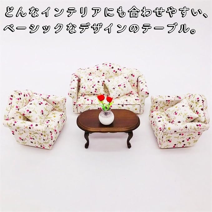 moin moin ミニチュア 家具 1/12 1:12 ドールハウス コーヒー センター ソファ ロー テーブル 机 ウッド ブラウン シンプル 木製 猫足 2311mini36