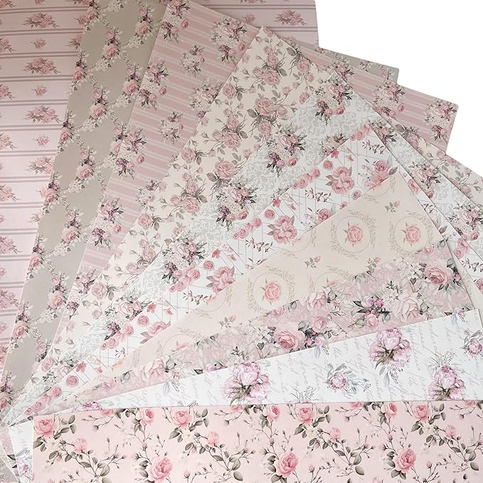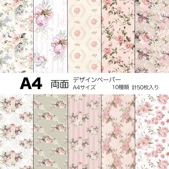 TOHYAN A4 両面デザインペーパー ピンク系花柄 バラ 上質紙90 デザぺ 包装紙 10種類50枚入 日本製 カラー デザイン用紙 コラージュ ラッピングペーパー ボタニカル エレガント フラワー 可愛い おしゃれ ハンドメイド 工作