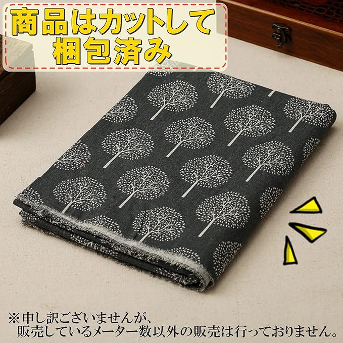 オシャレで人気な北欧風のツリー柄 コットンリネンプリント生地 長さ:約2m 幅1.55m 重量:約600g 素材:綿麻(コットンリネン)